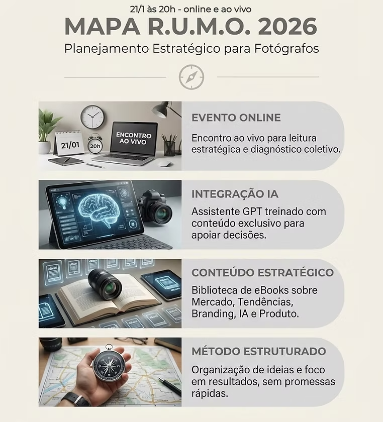 1. Dia do Fotógrafo 2026: Fotografia é Decisão [Mentalidade: Carreira] O artigo mais lido da semana (e do ano, até agora) tocou na ferida. O "fazedor de fotos" está com os dias contados.