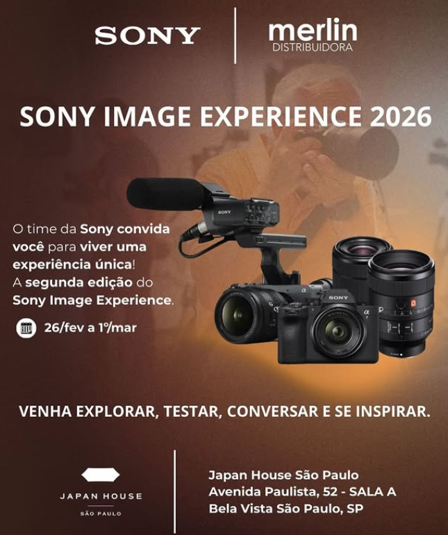 A Sony Professional Solutions Brasil realiza, de 26 de fevereiro a 1º de março, em São Paulo, a segunda edição do Sony Image Experience, evento gratuito voltado a fotógrafos, filmmakers e criadores de conteúdo. A programação acontece na Japan House e reúne experiências práticas, demonstrações de equipamentos e workshops com profissionais do mercado.